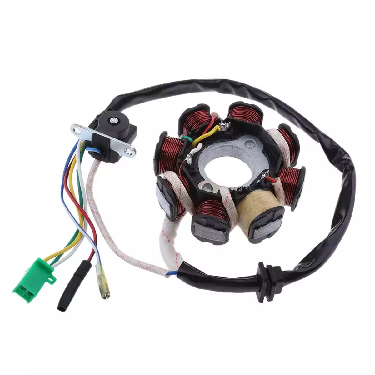 8-napainen sytytysjärjestelmän staattori GY6 125cc-150cc Kiinan moottoreille. Sopii laajasti esim skootterit, mönkijät ja go kart.