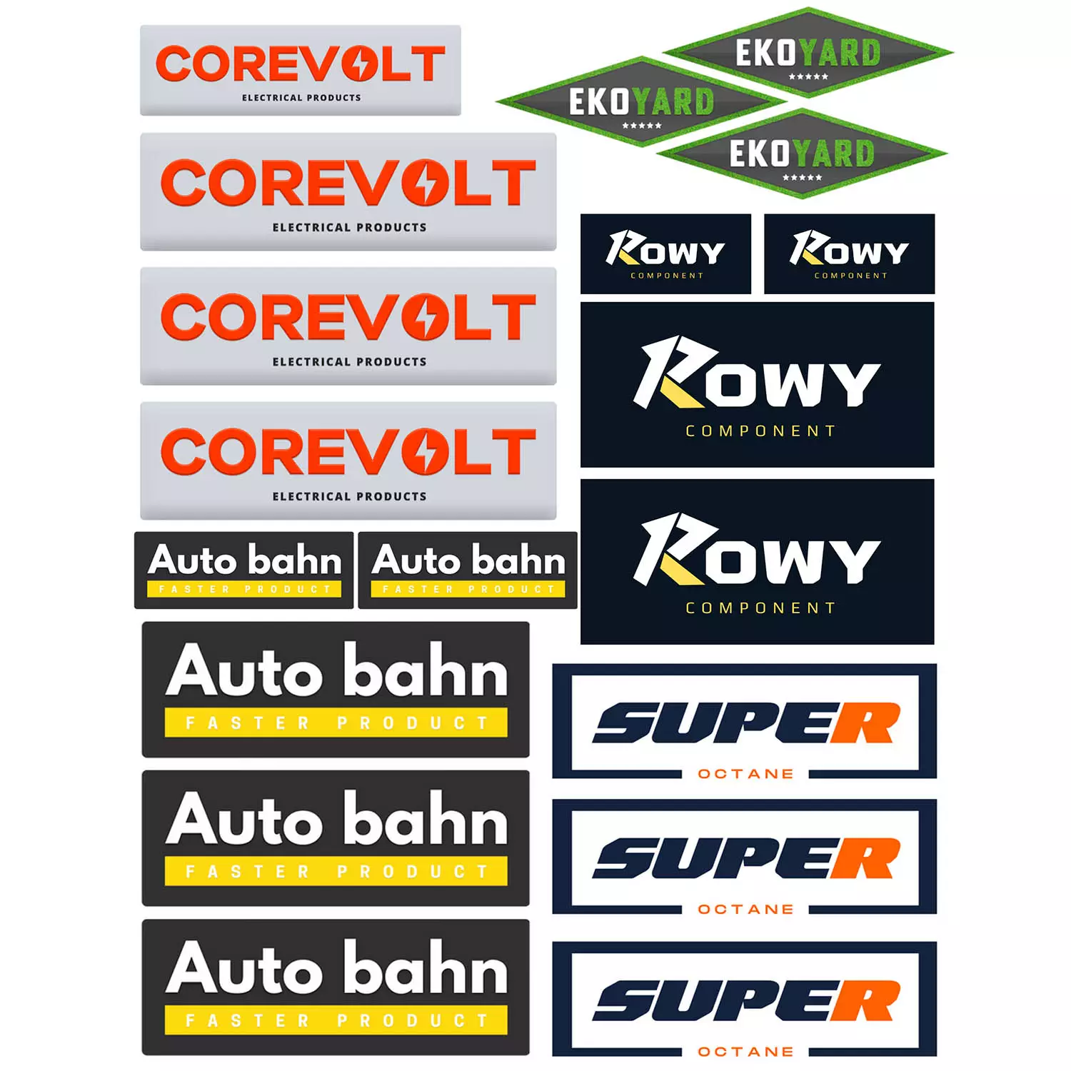 Tämä monipuolinen tarrasetti sopii täydellisesti erilaisiin menopeleihin, kuten autoihin, moottoripyöriin, polkupyöriin ja muihin harrastusvälineisiin. Corevolt, Ekoyard, Auto Bahn ja Rowy Component tarjoavat laajan valikoiman tyylejä, jotka sopivat monenlaisiin käyttötarkoituksiin.