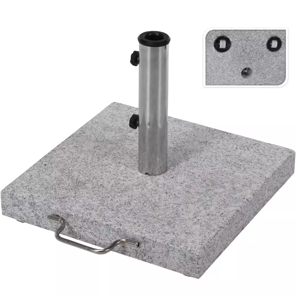Siirreltävä vaaleanharmaa laadukas Graniittiaurinkovarjon jalka on tukeva jalusta päivänvarjoille, joidenvarren halkaisija on 25-48mm.