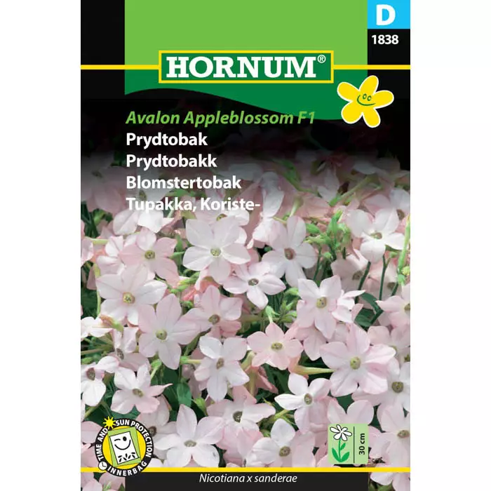 Hornum Koristetupakka 'Avalon Appleblossom F1' on yksivuotinen, tunnettu kesäkukka, joka tuottaa koko kesän kauniita pastellinsävyisiä kukkia. Erittäin vahva kasvi, joka kasvaa tiiviisti ja sopii hyvin kukkapenkkiin tai kukkaruukkuun. Maaperän olisi hyvä olla ravinteikasta ja hyvin valutettua. Kylvettäessä siemeniä ei peitetä mullalla, vaan niiden päälle asetetaan folio tai siemenet kylvetään pienoiskasvihuoneeseen.