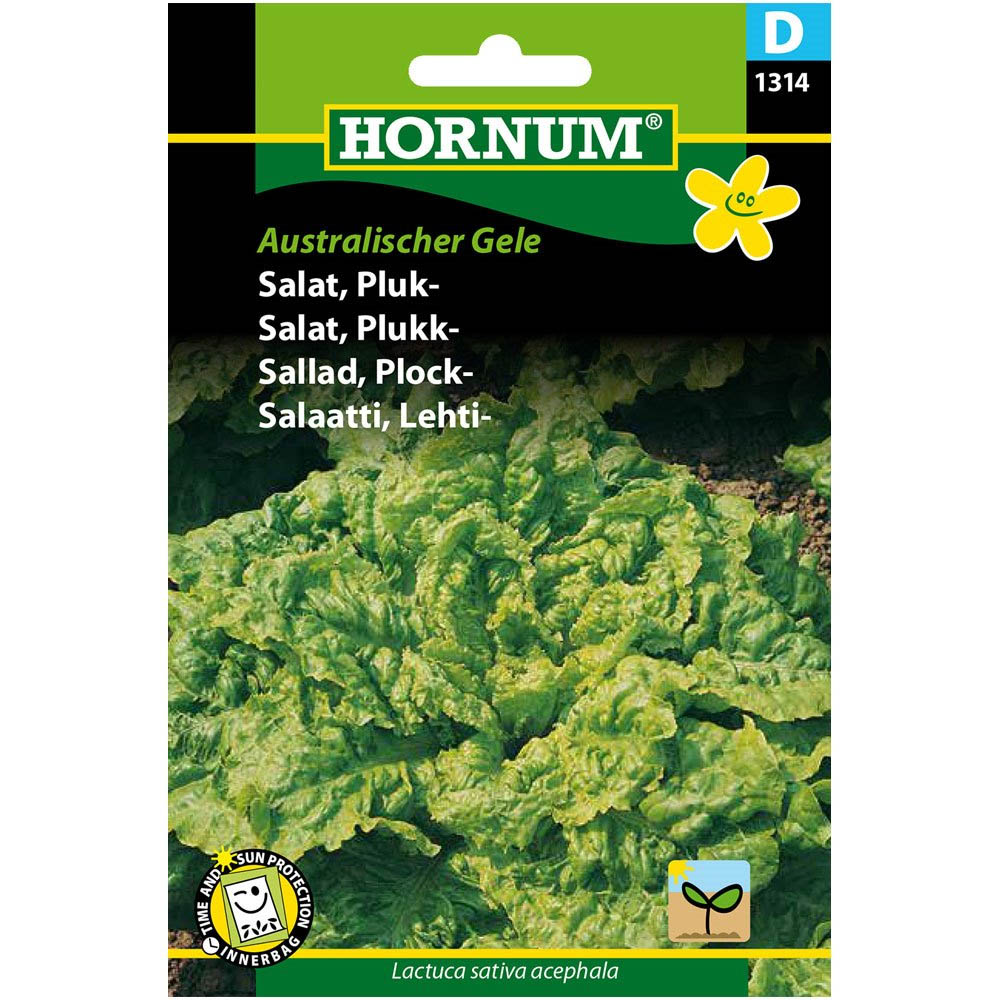 Hornum lehtisalaatti 'Australiascher Gele' on runsassatoinen lehtisalaatti, joka kehittää keltavihreitä kähäriä lehtiä. Lajike viihtyy auringossa tai puolivarjossa, kasvualustan olisi hyvä... Lue lisää