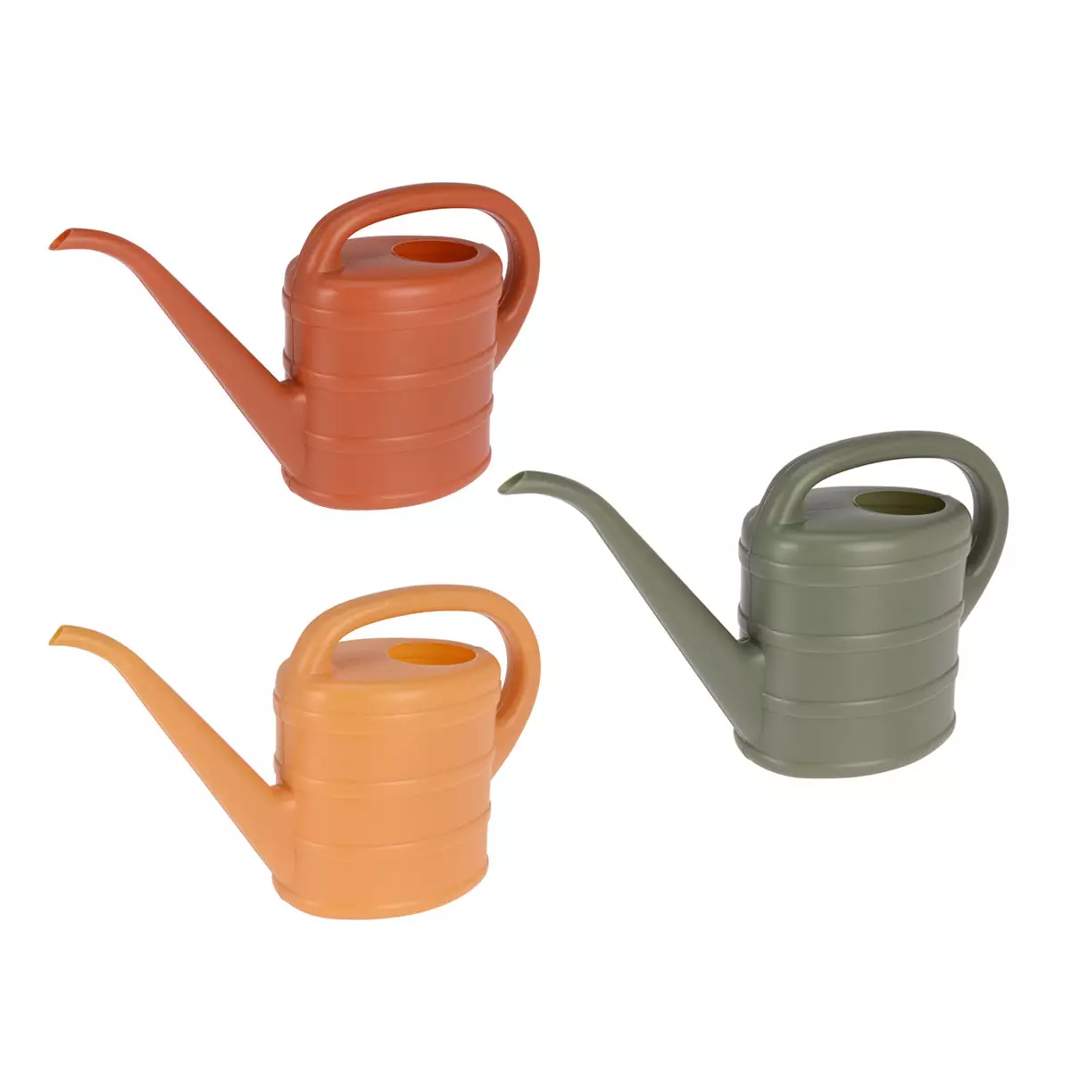 Kastelukannu on saatavilla kolmessa kauniissa värissä - oranssi/terrakotta, keltainen/okra ja vihreä - jotka sulautuvat luontevasti kodin tai puutarhan ilmeeseen.