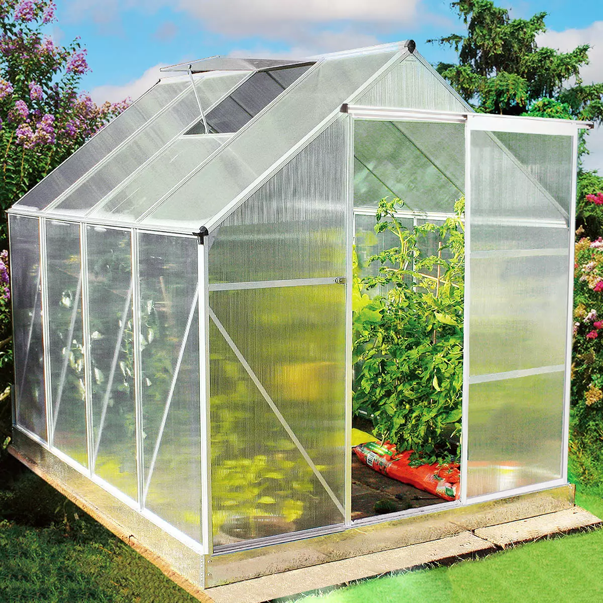 Pinta-alaltaan 4,8 m² kasvihuone sopii niin pienviljelijälle kuin intohimoiselle viherpeukalolle. Siinä onnistuu vaivatta: