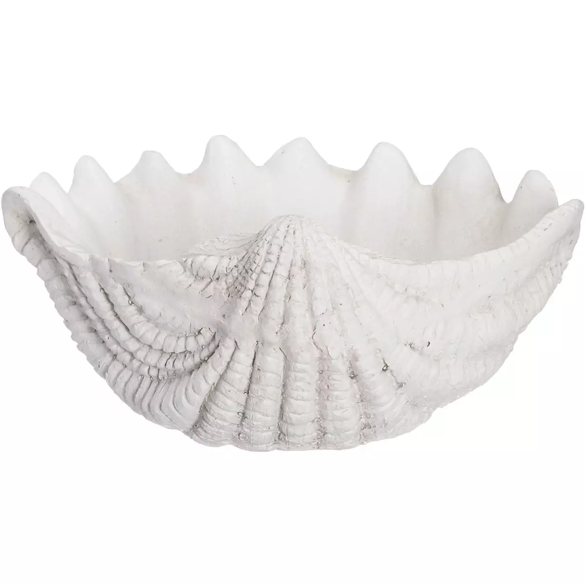 Elegantti simpukan muotoinen koristeallas tuo ripauksen rannikon rauhaa ja luonnon kauneutta sisustukseen, puutarhaan ja terassille. Antiikinvalkoinen väri ja aidon tuntuinen pintatekstuuri tekevät koristeesta näyttävän ja ajattoman valinnan kaikenlaisiin tiloihin.