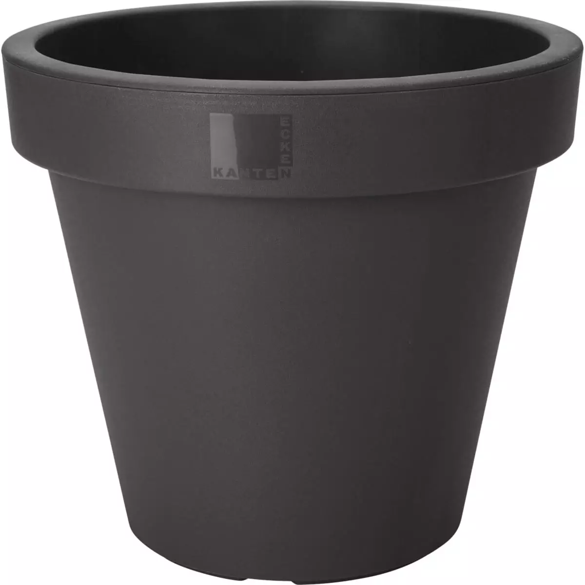 Suuri antrasiitin värinen muovinen kukkaruukku ulkokäyttöön ja sisätiloihin. Halkaisija 80 cm ja korkeus 68 cm sopivat isoille kasveille.