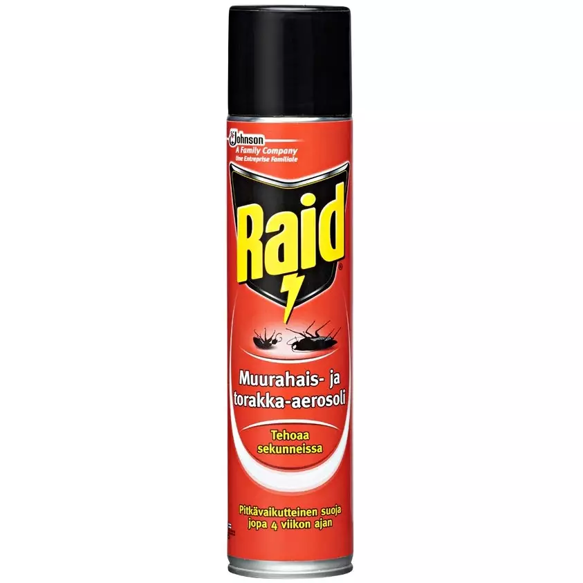 Tuotteen tehosta kertoo sen kyky hävittää torakat, jotka ovat tunnetusti sitkeitä ja vastustuskykyisiä hyönteisiä. Raid tehoaa myös muurahaisiin, sokeritoukkien ja lutikoiden torjuntaan.