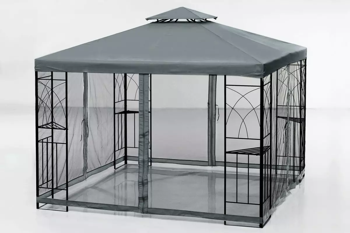 Barcelona paviljongin katoksen mukana toimitetaan hyttysverkko seinät, jotka voidaan helposti kiinnittää paviljonkiin. Hyttysverkko seinät estävät hyttysten ja muiden ötököiden pääsyn paviljonkiin, joten voit nauttia rauhassa oleskelusta ulkona. Paviljonki varakatoksen yhteydessä olevat hyttysverkko seinät voidaan halutessa irrottaa.