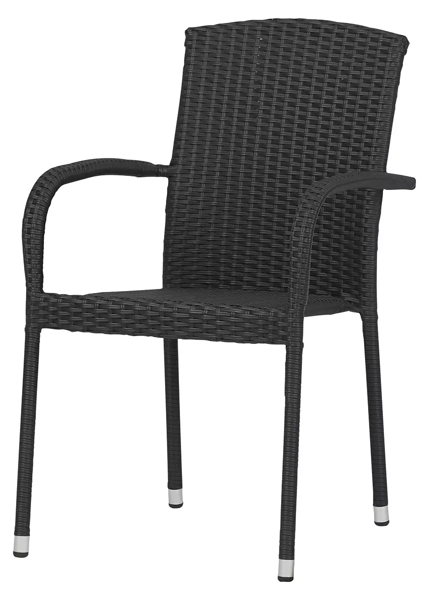 Tyylikäs puutarhatuoli käsinojilla ja korkealla selkänojalla. Säänkestävä punottu materiaali, metallirunko. Sopii puutarhaan tai terassille. Väri antrasiitti.
