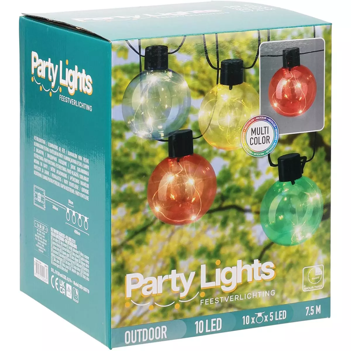 Kirkkaanväriset 8 cm kupupallot sisältävät kussakin 5 LEDiä, jotka valaisevat pehmeästi ja elävästi. Vahva materiaali soveltuu ulkokäyttöön ympäri vuoden, ja 7,5 metrin kokonaispituus tarjoaa runsaasti sijoitusvaihtoehtoja.