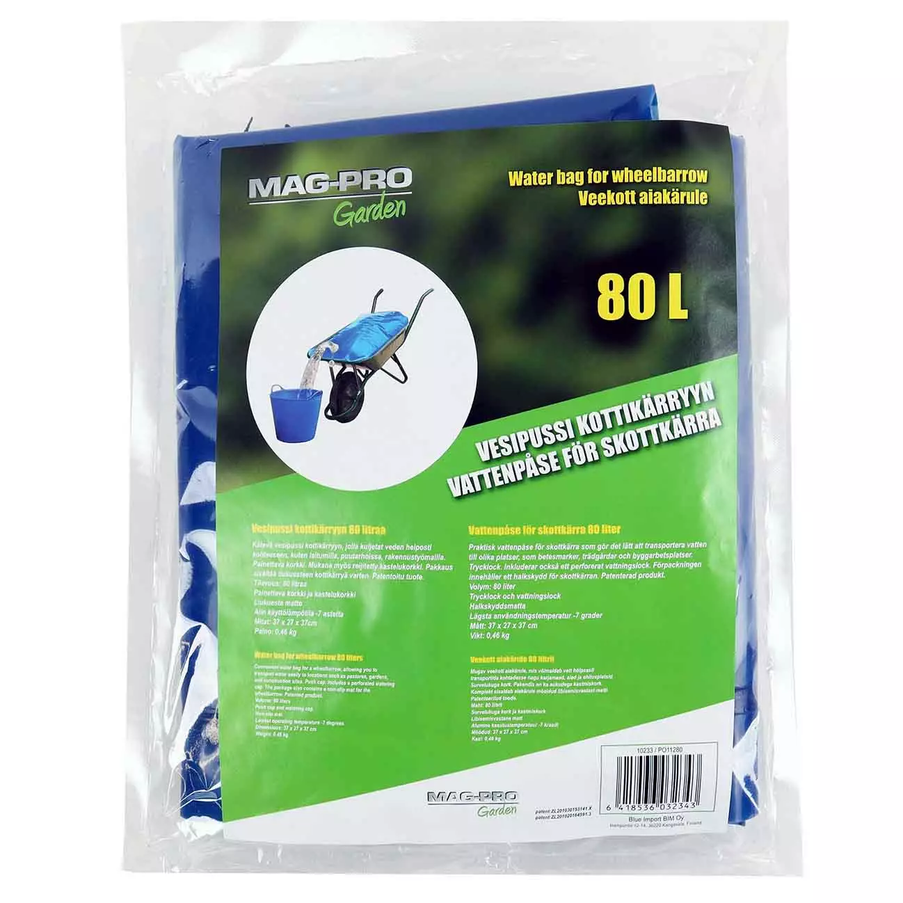 Patentoitu 80 litran vesipussi veden helppoon kuljettamiseen kottikärryllä. Kottikärryyn suunniteltu vesiastia tekee veden siirtämisestä helppoa paikoissa, joissa hana ei ole lähellä. Täydellinen ratkaisu laitumille, puutarhoihin, rakennustyömaille ja kesämökeille missä vesipistettä ei ole välittömässä läheisyydessä. Pussi täyttyy nopeasti ja pysyy tukevasti paikoillaan mukana tulevan liukuestematon ansiosta.