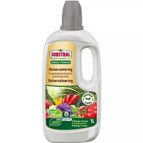 Yleislannoite Luomu Substral 1L on valmistettu maissipohjaisista, orgaanisista raaka-aineista. Se ei sisällä vinassia, mikä tekee lannoitteesta hajuttoman ja helppokäyttöisen myös sisäkasveille.