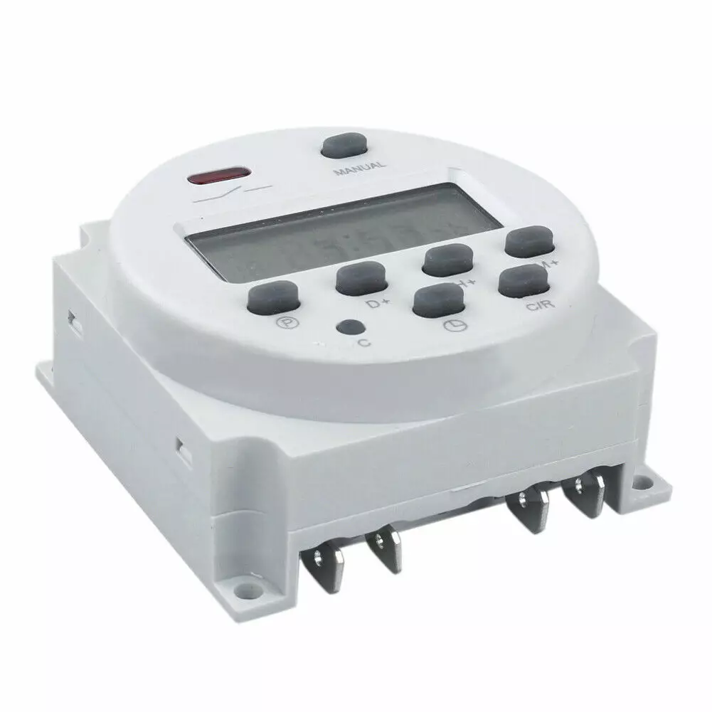12 V viikkoajastin releohjauksella. Digitaalinen ajastin viikko-ohjelmalla, minuutit, tunnit ja päivät (17 eri päälle / pois tapahtumaa) päivässä. Aikajakso 1 min - 168 h.