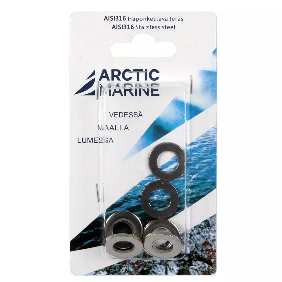 Arctic Marine aluslevyt M10 on suunniteltu koviin sääolosuhteisiin. Haponkestävästä teräksestä valmistetut aluslevyt ovat meriveden kestäviä. Paketissa on 10 kpl 10 mm aluslevyjä.