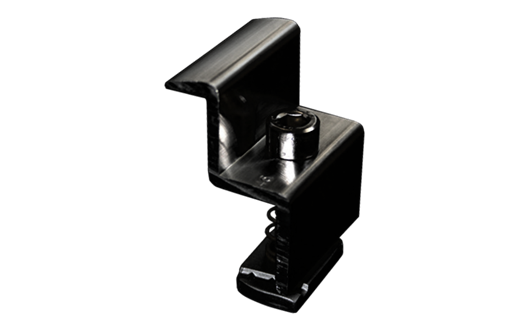 Kiinnike jolla aurinkopaneelin saa kiinnitettyä kiskoon.