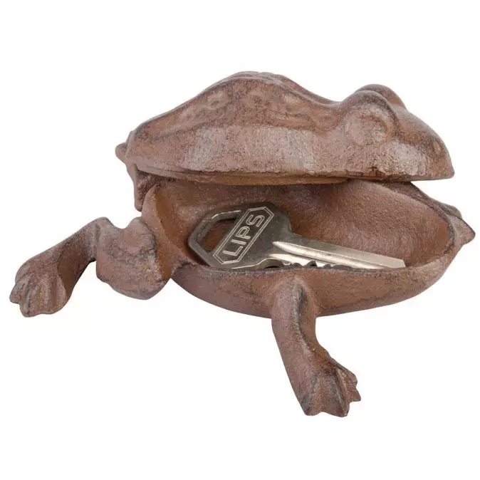 Avainpiilo koristepatsas on hurmaava valurautainen pihakoriste, jonka sisässä voi säilyttää avaimia. Säänkestävä patsas on kooltaan 10 x 7 x 5 cm, joten pieni sammakko, kilpikonna tai siili on helppo sijoittaa esimerkiksi terassin hyllylle tai kukkaruukkuun. Pienet eläinkoristeet ovat hienoja katseenvangitsijoita kodin pihapiirissä, parvekkeella tai terassilla. Valurautainen pieni eläinpatsas sopii niin koristeeksi kuin avainkoteloksikin. Lajitelmavaihtoehdot: sammakko, kilpikonna tai siili