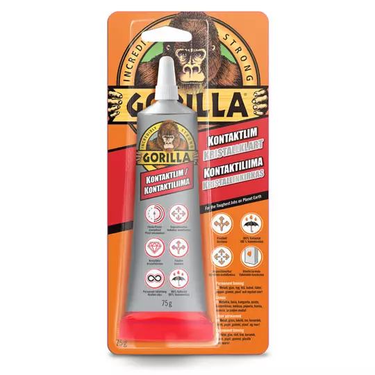 Monikäyttöinen Gorilla kontaktiliima on erinomainen liima erilaisille materiaaleille. Liima soveltuu muun muassa metallin, lansin, kankaiden, puun, keramiikan, nahan, paperin, kumin sekä muovin liimaamiseen. Nopeasti kovettuva liima pitää jo sekunneissa, mutta kontaktiliima sallii pintojen uudelleen asettelun yhdistettäessä jopa neljän minuutin ajan.