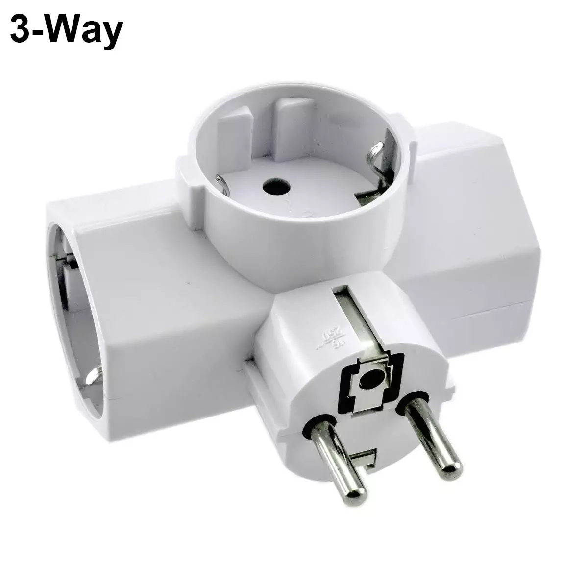 Maadoitettu kolmiosainen haaroitin schukopistokkeelle on suunniteltu sisäkäyttöön. 3-osaisessa sähköhaaroittimessa on koskettimet sivuille ja ylöspäin. Erinomainen apuväline esimerkiksi jouluvalojen ja huonetilan valaisimien päälle kytkennässä. Haaroittimen avulla jakaa vaivattomasti sähköä kolmeen eri sähkölaitteeseen. 3-osaisen sähköhaaroittimen kokonaispituus on 85mm, maksimi leveys 87mm ja syvyys 63mm.