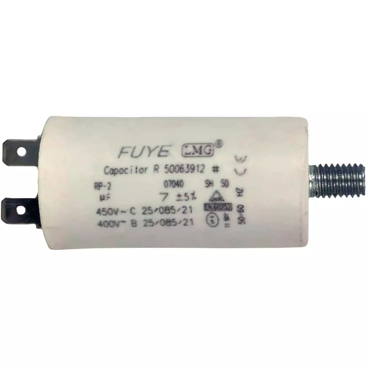Hallilämmittimen kondensaattori 7 µF on tarkoitettu hallilämmittimien ja vastaavien laitteiden sähkökomponentiksi, jossa vaaditaan tarkasti määritelty kapasitanssi ja mekaaninen kiinnitys kierteellä.
