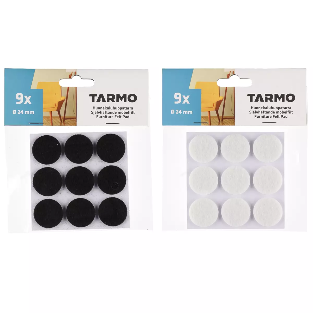 HUONEKALUHUOPA PYÖREÄ 24mm 9kpl - Värivaihtoehdot musta ja valkoinen!