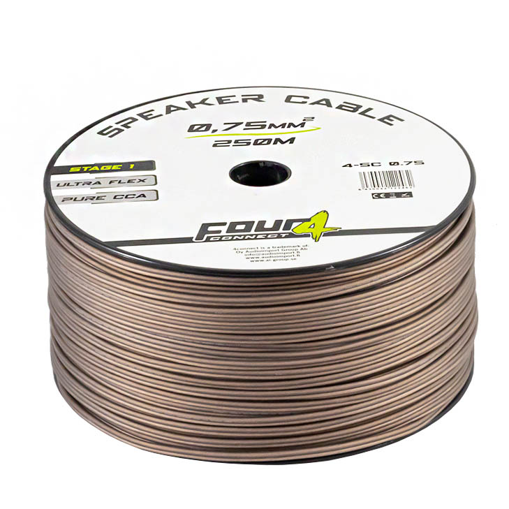 Kaiutinkaapeli 4-SC on kooltaan 0,75mm² ja mahdollistaa edullisen vaihtoehdon autoon. Hienosäikeisessä merkin 4Connect OFCA-kaapelissa (Oxygen free copper cladded aluminium) on joustava silikonipohjainen kumieriste, joka pysyy notkeana myös pakkasella. Näppärä kaiutinkaapeli / johto myydään metreittäin.