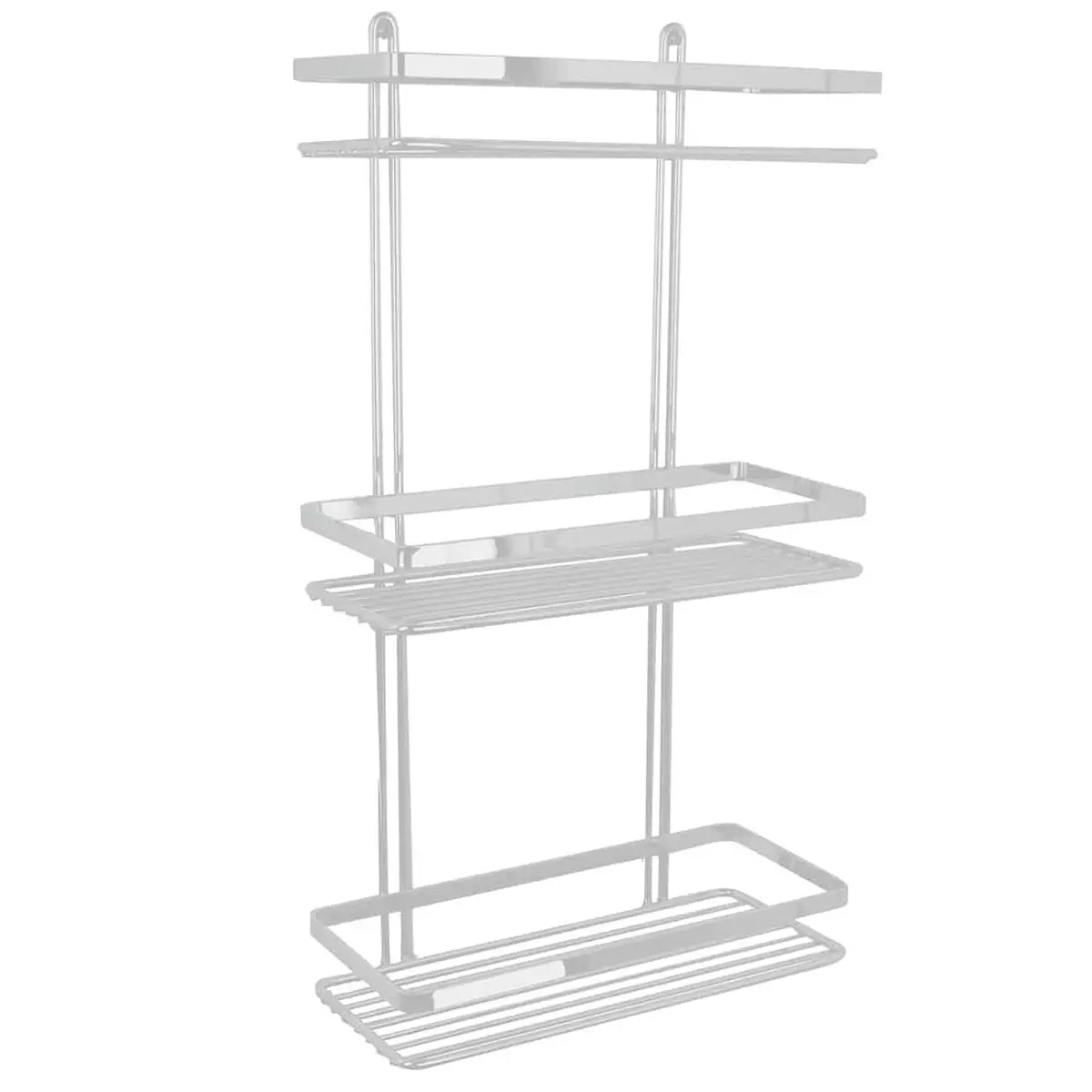 Tyylikäs Duschy kylpyhuonehylly on ihanteellinen kylpyhuoneen pientavaroiden, kuten saippuoiden, voiteiden ja pesusienien säilyttämiseen. Pesutilaan ripustettava suora seinähylly on varustettu kolmella hyllytasolla, joten hyllyllä saadaan runsaasti säilytystilaa erilaisille kylpyhuoneen pientavaroille. Ruuvikiinnityksellä seinälle asennettava metallihylly on helppo sijoittaa esimerkiksi pukuhuoneeseen, kylpyhuoneeseen tai muihin pesutiloihin. Valkoisen hyllyn mitat ovat 25x12x46 cm.