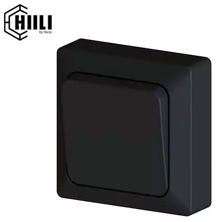 Tyylikäs Harjun Hiili-sarjan 1/6 kytkin on väriltään mattamusta. Pinta-asennettava valokatkaisija sopii kodin kuiviin tiloihin.