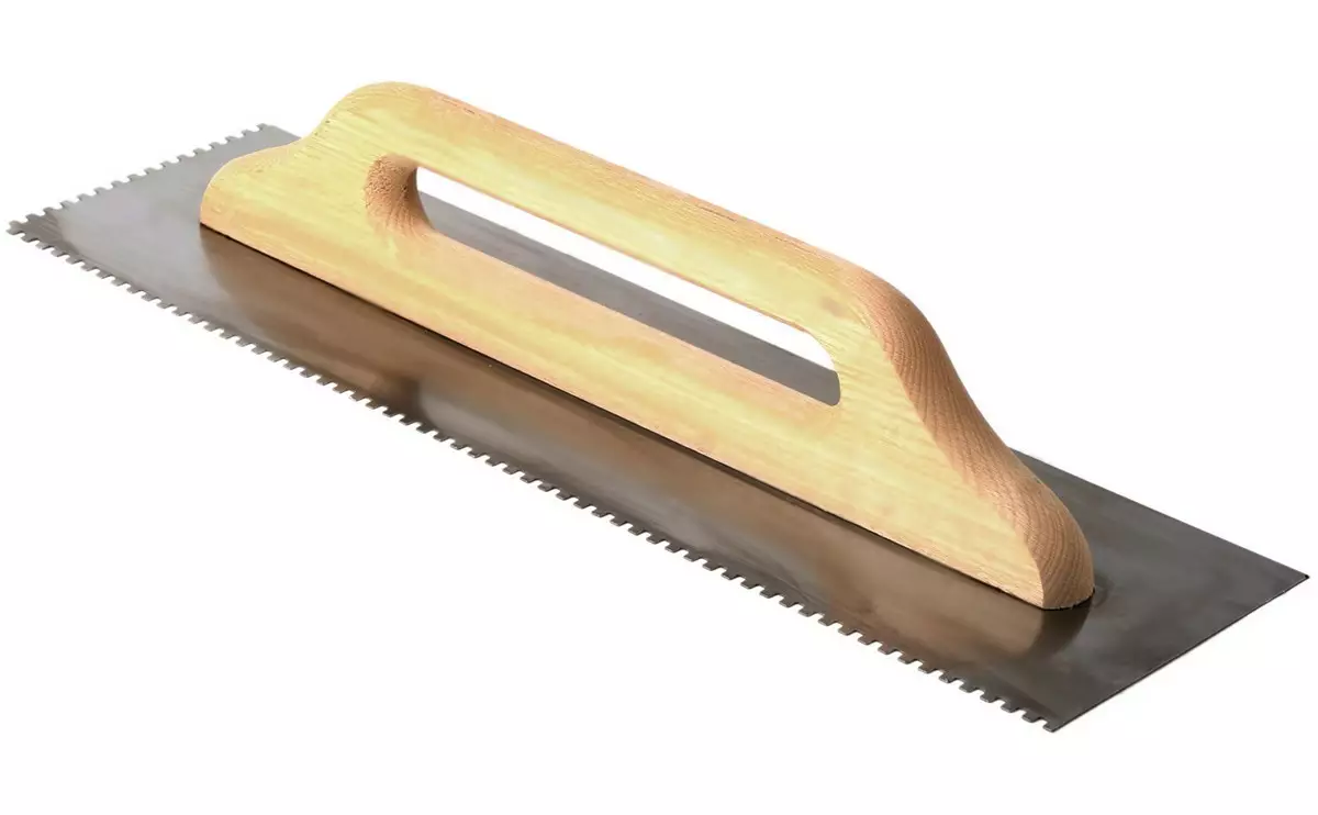 Vahva, ruostumattomasta teräksestä valmistettu laastikampa 6x6mm hammastuksella laatoitukseen.