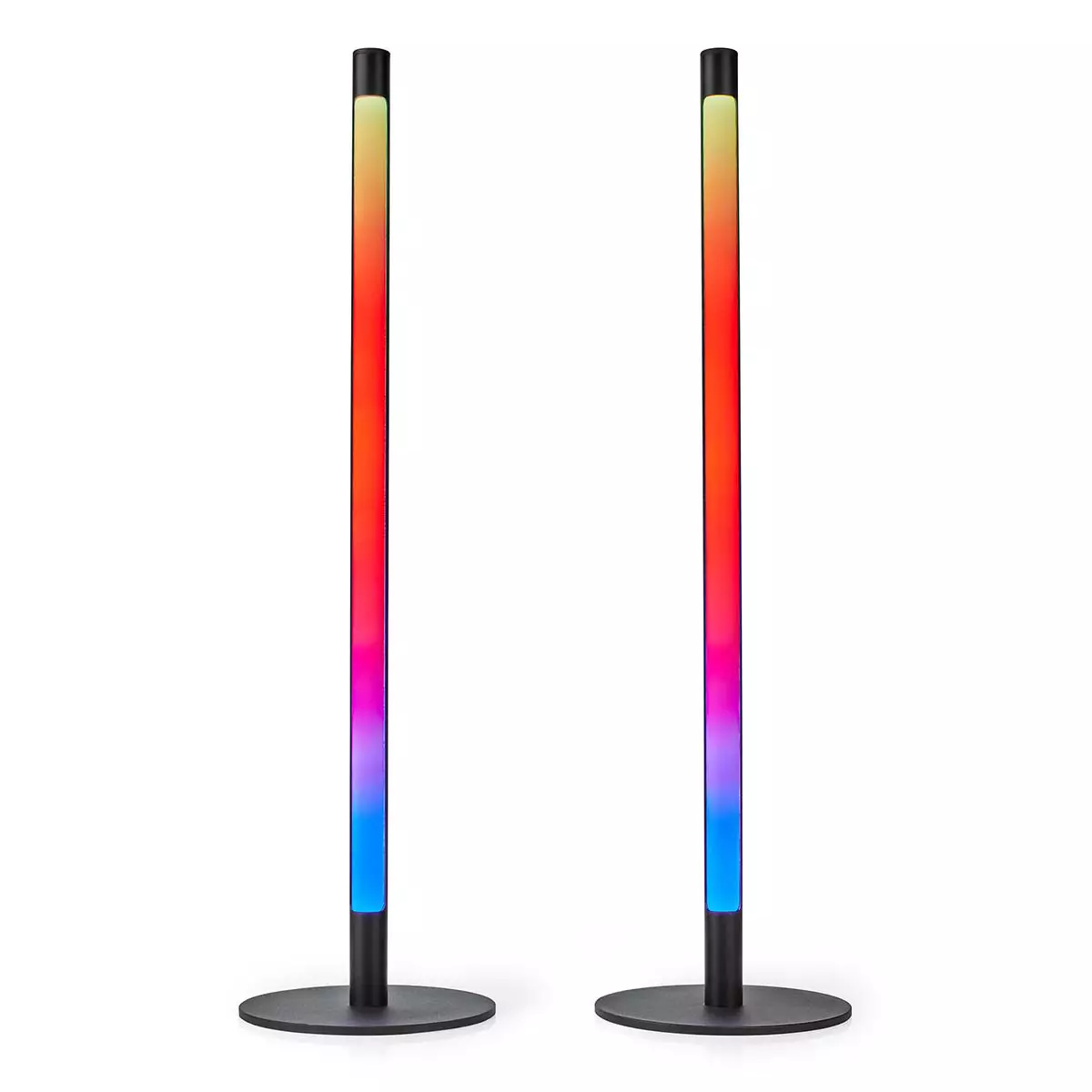 Pöytävalaisimet ovat korkeudeltaan 55 cm, ja molemmissa valaisimissa on jopa 72 LED-valoa, jotka takaavat tasaiset väritilat. Lamput ovat varusteltu plug & play-ominaisuudella, jolloin valaisimet yhdistyvät suoraan WiFi-verkkoon. Tunnelmavalaisimiin on valittavissa jopa 12 esiasetettua dynaamista tai staattista tilaa. Lisäksi värilämpötilaa saa säädettyä 2700-6500 K välillä, joka mahdollistaa oikeanlaisen tunnelman saavuttamisen.