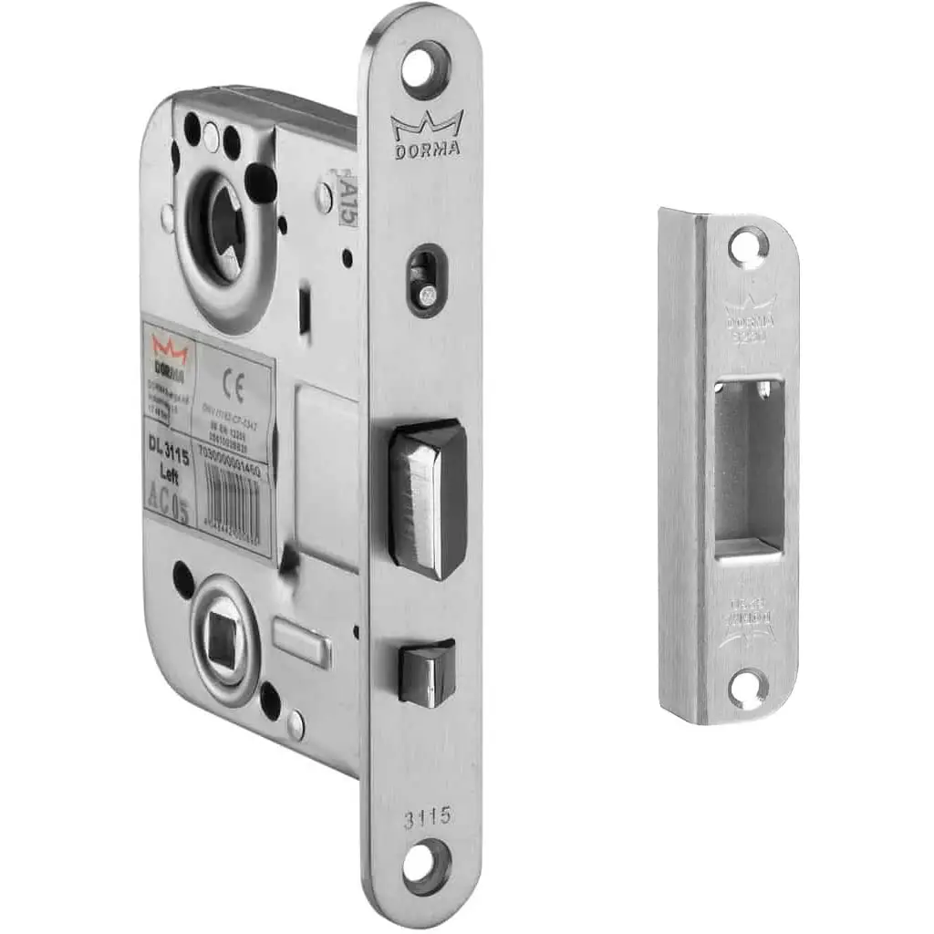 Pakkaukseen sisältyy lukkorunko ja vastarauta. Dorma 3115 ulko-oven lukko sopii standardien SFS 5209 mukaisiin upotuksiin. Lukkorunko on valmistettu teräksestä.