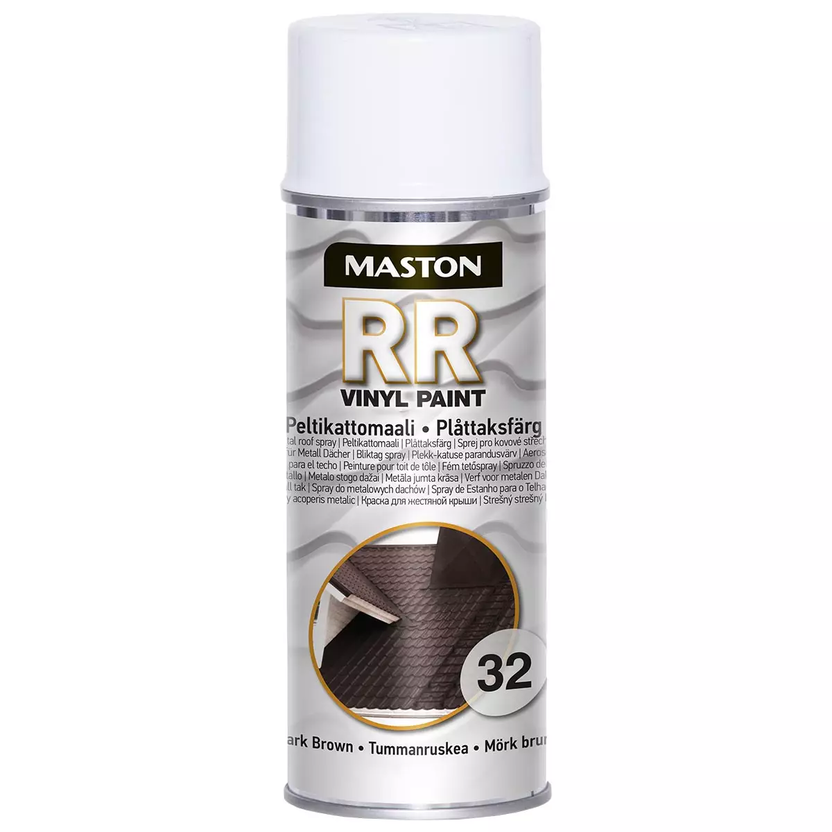 Erityisesti peltikattojen korjaukseen suunniteltu tummanruskea Maston RR 32 vinyyli spraymaali. Laadukas peltikattomaali soveltuu vinyylipeltikattojen lisäksi käytettäväksi myös muille yleisille pinnoitusmateriaaleille. Helppokäyttöinen ja näppärästi levitettävä maali tartttuu hyvin ilman erillistä pohjamaalia esimerkiksi polyuretaani-, vinyyli-, muovi- ja polyesteripinnoille. Maston RR 32 peltikattomaalin ainutlatuisen koostumuksen ansiosta maali kestää erinomaisesti kuumuutta ja auringonvaloa.