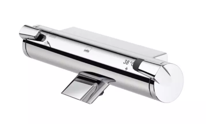 Termostaattinen amme- ja suihkuhana on tyylikäs vaihtoehto kylpyhuoneeseen. Hanan design miellyttää silmää ja pyöristetty muotoilu estää pisaroiden ja kuivumistahrojen muodostumista hanan pintaan. Kokonaisuuden viimeistelee lyhyt mutta näyttävä juoksuputki, josta vesi virtaa kylpyammeeseen.
