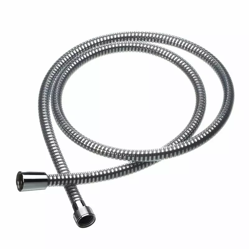 Muovinen kromin värinen suihkuletku molemmissa päivvä olevilla G1/2 liittimillä.