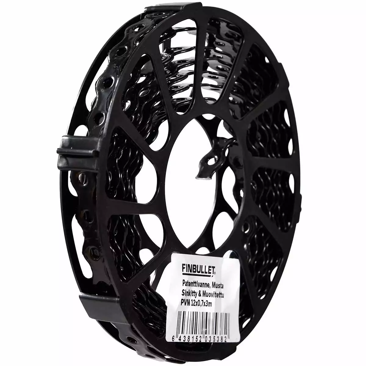 Muovitettu patenttivanne sidonta- ja kiinnityskäyttöön. Suojaa kosteudelta, helppo taivuttaa ja viimeistelty harmaa pinta ulko- ja sisäasennuksiin.