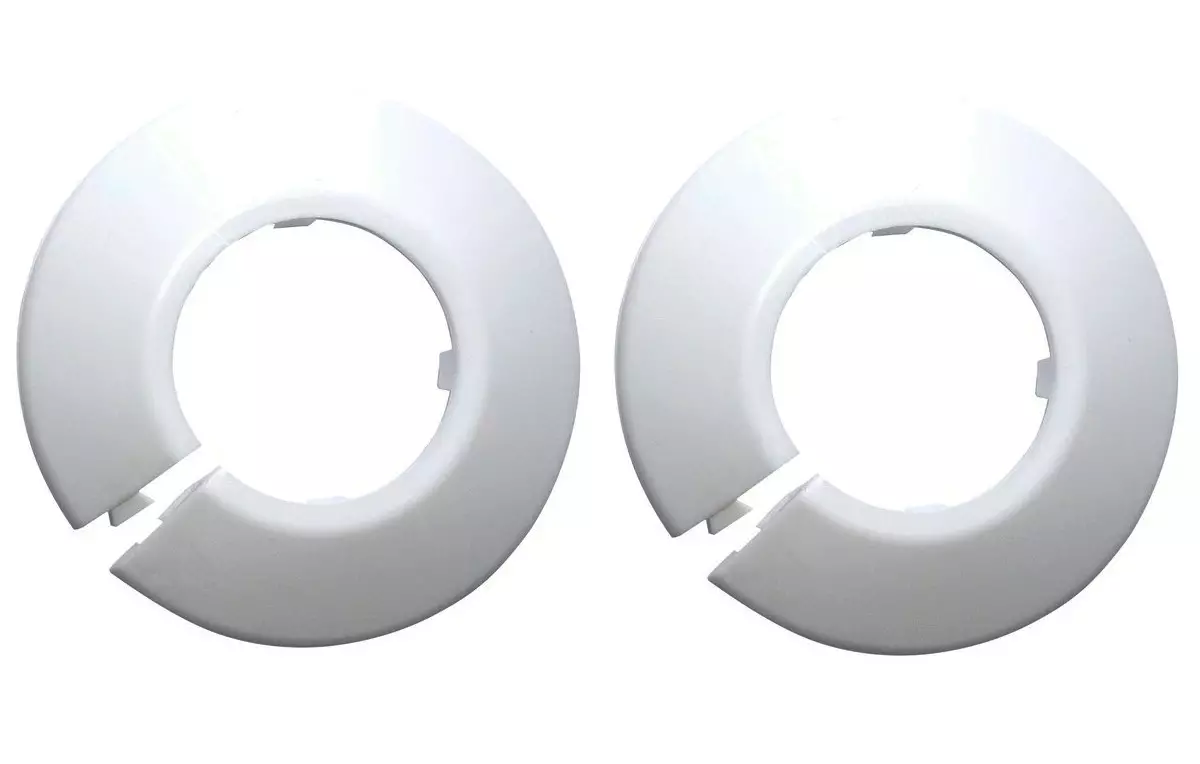 Peitelevy putken läpiviennin viimeistelemiseksi 18 mm:n putkille, valkoista muovia.