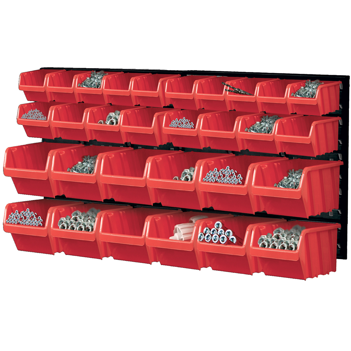Laatikostossa on yhteensä 30 erikokoista muovista irroitettavaa laatikkoa, jotka voidaan kiinnittää helposti ja nopeasti taustalevyyn. Laatikoston mukana toimitettavan taustalevyn ansiosta laatikoston kiinnittäminen seinälle on erittäin nopeaa ja kätevää. Taustalevy on valmistettu kestävästä ja laadukkaasta muovista, joka kestää hyvin aikaa sekä kulutusta.