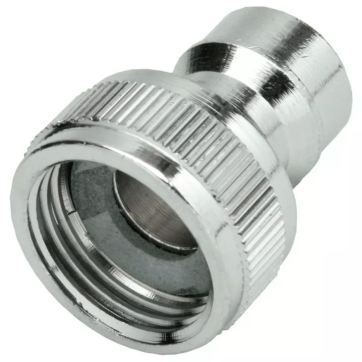 PIKALIITINNIPPA KROMI 1" Kuulapikaliitin metallinen kesteluletkulle. Pikaliitinnippa kromattu messinki Koko: 1" Sisäkierre - M22-kierre