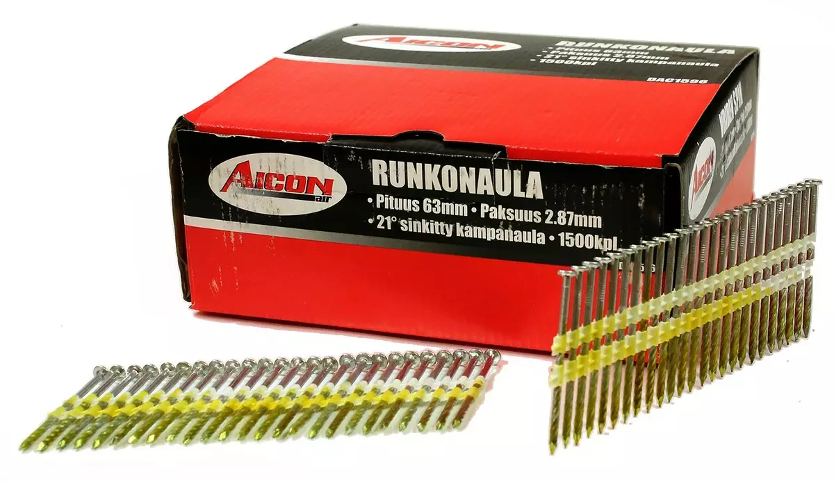 Aicon Pro runkonaula 21° 63 mm (tunnetaan myös nimillä runkonaula, konenaula, kampanaula, naulapyssyn naula) on vahva ja monikäyttöinen naula, joka soveltuu erityisesti runkorakenteisiin, koolauksiin ja muihin puurakentamisen kiinnityksiin. Sinkitty pinta suojaa korroosiolta ja takaa pitkäikäisen kestävyyden.
