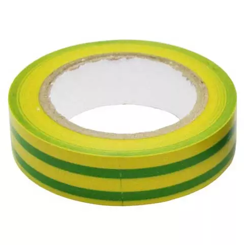 Vihreäkeltainen sähköteippi 1 kpl pakkauksessa. Yhdessä rullassa on 10 metriä leveydeltään 15 mm ja väritykseltään keltavihreää sähköteippiä.