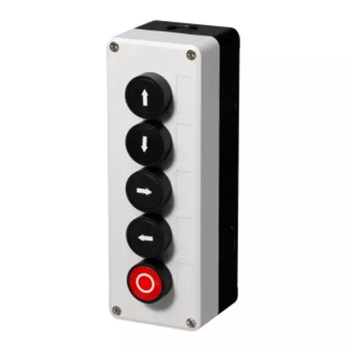 Ohjauskotelolla voit hallita laitteita ylös / alas / oikealle / vasemmalle / stop. Painikekytkin sopii esimerkiksi rulla- tai nosto-oviin sekä vinsseihin. Painikekytkin sopii erityisesti teollisuuteen.