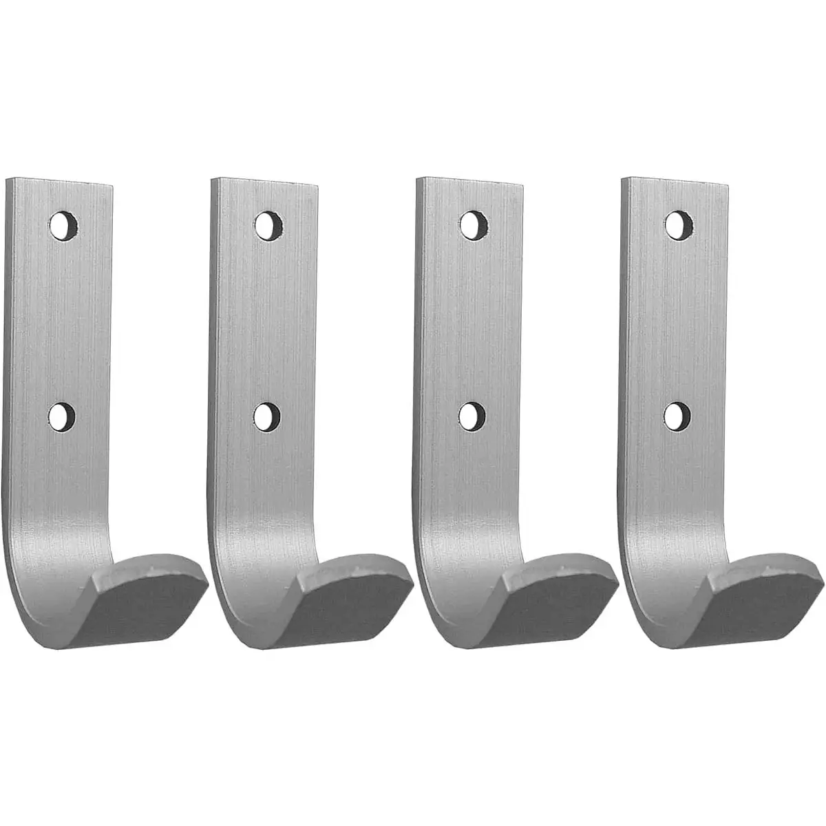 Alumiinista valmistetut tilavat seinäkoukut 4 kpl:n pakkauksessa. Ruuveilla kiinnitettävät vaatekoukut tuovat lisää säilytystilaa eteiseen ja vaatevarastoon.