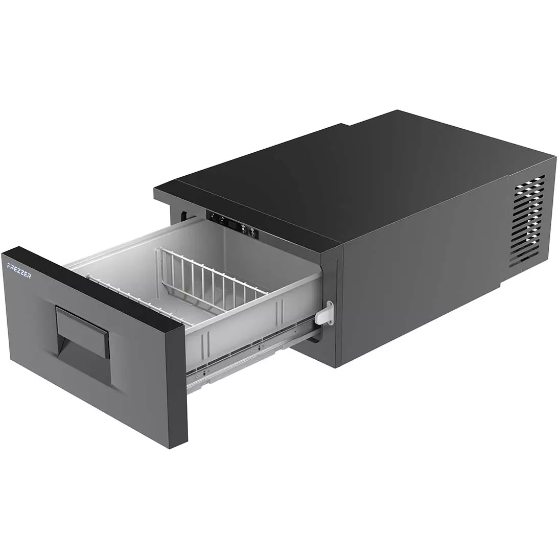 Kompressorikäyttöinen Frezzer Pro 20L Vetolaatikkojääkaappi on kompakti valinta asennuskohteeseen, jossa ei ole liikaa ylimääräistä tilaa. Vetolaatikkotyylinen kompressorijääkaappi asennetaan tavallisen vetolaatikon kokoiseen tilaan, jolloin pieneenkin tilaan saadaan tehokkaasti jäähdyttävä jääkaappi. Vetolaatikkojääkaappi mahdollistaa ruokien laadukkaan säilytyksen esimerkiksi veneessä, hyötyajoneuvossa, matkailuautossa tai mökillä.