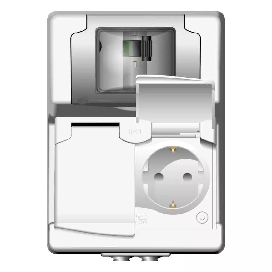 Laadukas ja helposti asennettava vikavirtapistorasia on vikavirtasuojakytkimen ja 2-osaisen pisorasian kätevä yhdistelmä. Pinta-asennettavan kotelon yläosassa on vikavirtasuojakytkin, jonka alapuolella on kaksi luukullista suojamaadoitettua SCHUKO-pistokepaikkaa. Helposti esillä olevat kytkimet ja pistokepaikat parantavat vikavirtapistorasian toiminnallisuutta ja helppokäyttöisyyttä. Pistorasian muotoilussa on huomioitu riittävä kytkentätila ja parempi asennettavuus myös epätasaisille pinnoille.