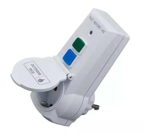 Roiskevesisuojattu vikavirtasuoja ulkokäyttöön.- IP44