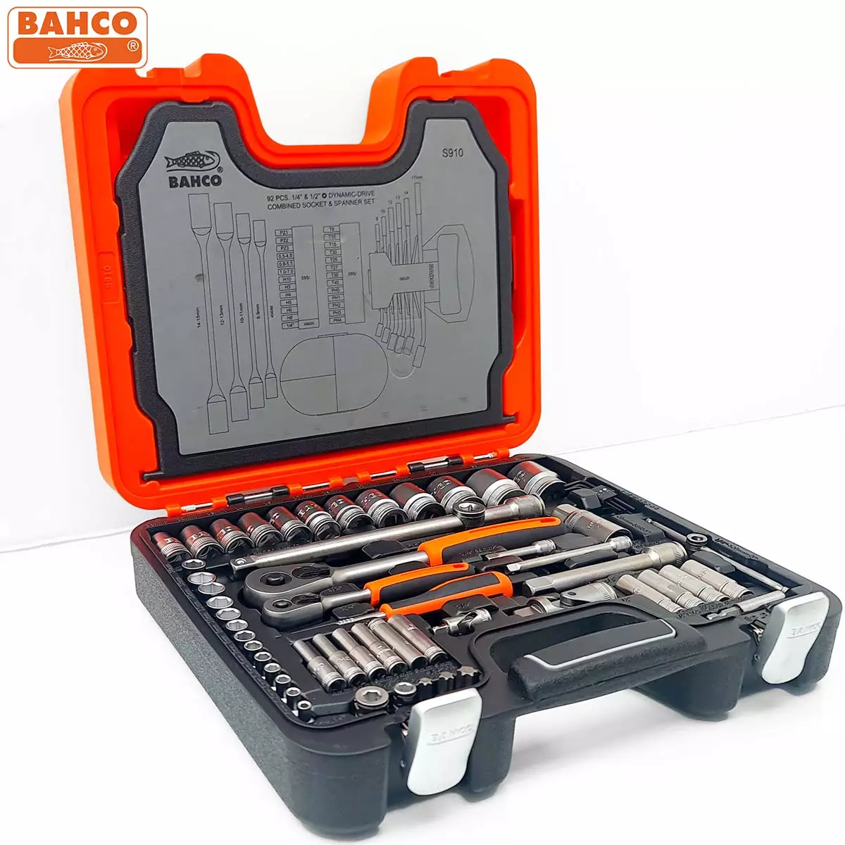 Laadukkaaseen sekä lujaan oranssi mustaan pakkiin kasattu hylsy-, kiintolenkki-, piippuavain sarja jotka on valmistettu huippulujasta Bahcon kromi-vanadium -teräksestä sekä mattakromi pinnoite tekevät avaimista miellyttävän käyttää sekä takaavat pitkän käyttöiän. Hylsysarjaan kuuluvassa räikkäavaimissa on laadukas kumi ja muovi pinnoite sekä hylsyissä Bahcon Dynamic Drive profiili. Hylsysetti tulee kätevässä 3-osaisessa muovisalkussa, jossa on suuri öjyn- ja lämpötilan kestävyys. Tämä pakki on täynnä takuu varmaa 100% Bahcon laatua!