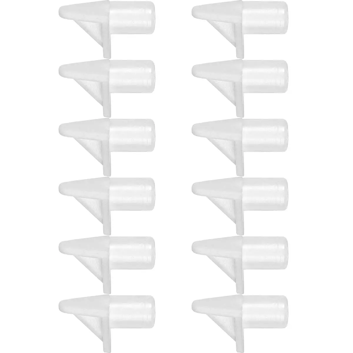 Muoviset hyllynkannattimet, jotka sopivat halkaisijaltaan 5 mm kalustereikään. Pakkaus sisältää kannakkeita yhteensä 12 kpl.