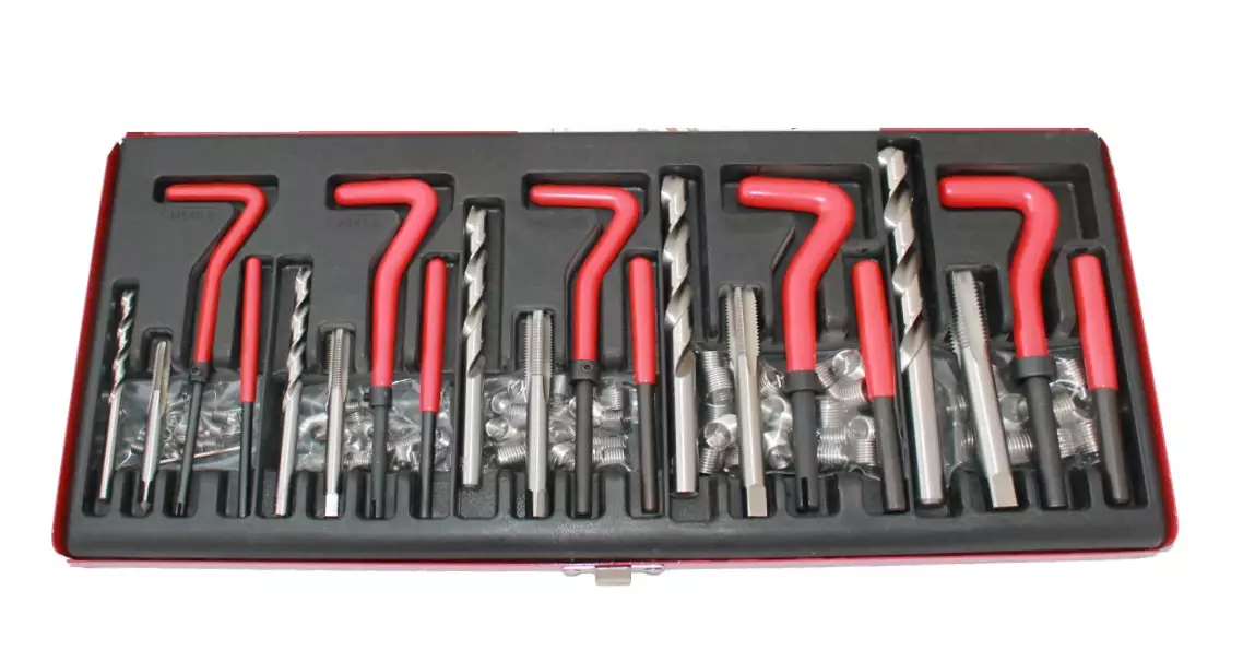 Todella laadukas, ammattikäyttöön soveltuva kierteenkorjaussarja. Käytetään vioittuneiden ja kuluneien kierteiden korjaamiseen.