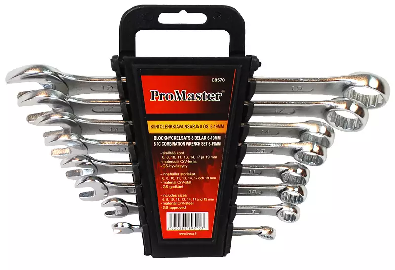 - 8-osainen sarja, sis. koot 6, 8, 10, 11, 13, 14, 17 ja 19mm