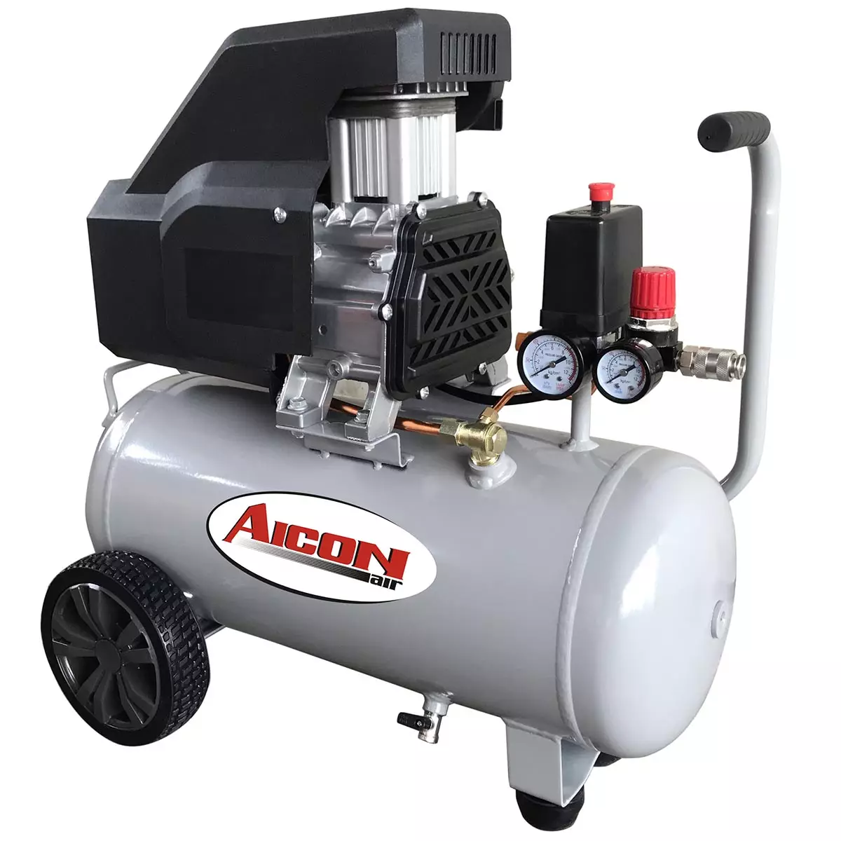 Laadukas Aicon paineilmakompressori 2hv 24L on tehokas, monipuolinen ja kestävä paineilmalähde kodin, verstaiden ja työmaiden paineilmatarpeisiin. 2HV kompressori on varustettu 24 litran terästankilla, joka mahdollistaa paineilmalaitteiden jatkuvan käytön ilman paineenvaihteluita. Paineilmakompressorin tuotto on 226l/min ja työskentelypaine on säädettävissä 0-8bar. Kompressori on varustettu vetokahvalla ja kumipyörillä, jotka helpottavat kompressorin siirtämistä. Paineilmakompressorin paino on 28kg.