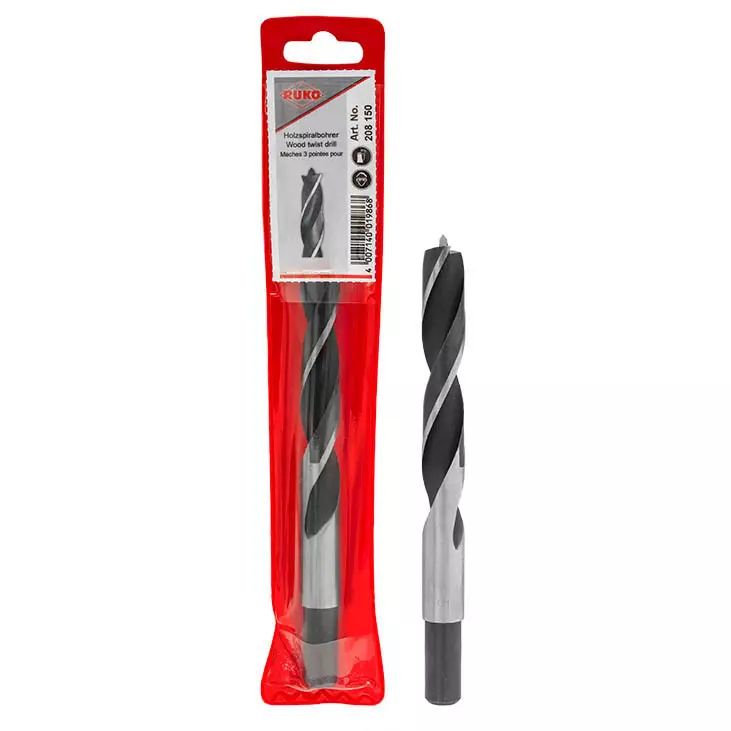 Korkealaatuinen rukon konepuuporanterä mustalla höyrykarkaistulla pinnalla ja hiotulla ohjauskärjellä. Puuporanterä soveltuu kovan ja pehmeän puun, vanerin, kovalevyjen ja viiluvanerien poruakseen. Terän kärjessä on kohdistusta helpottava keskityskärki sekä kaksi leikkuukärkeä. Pitkäikäisen terän valmistus materiaali on kromi-vanadium teräs.