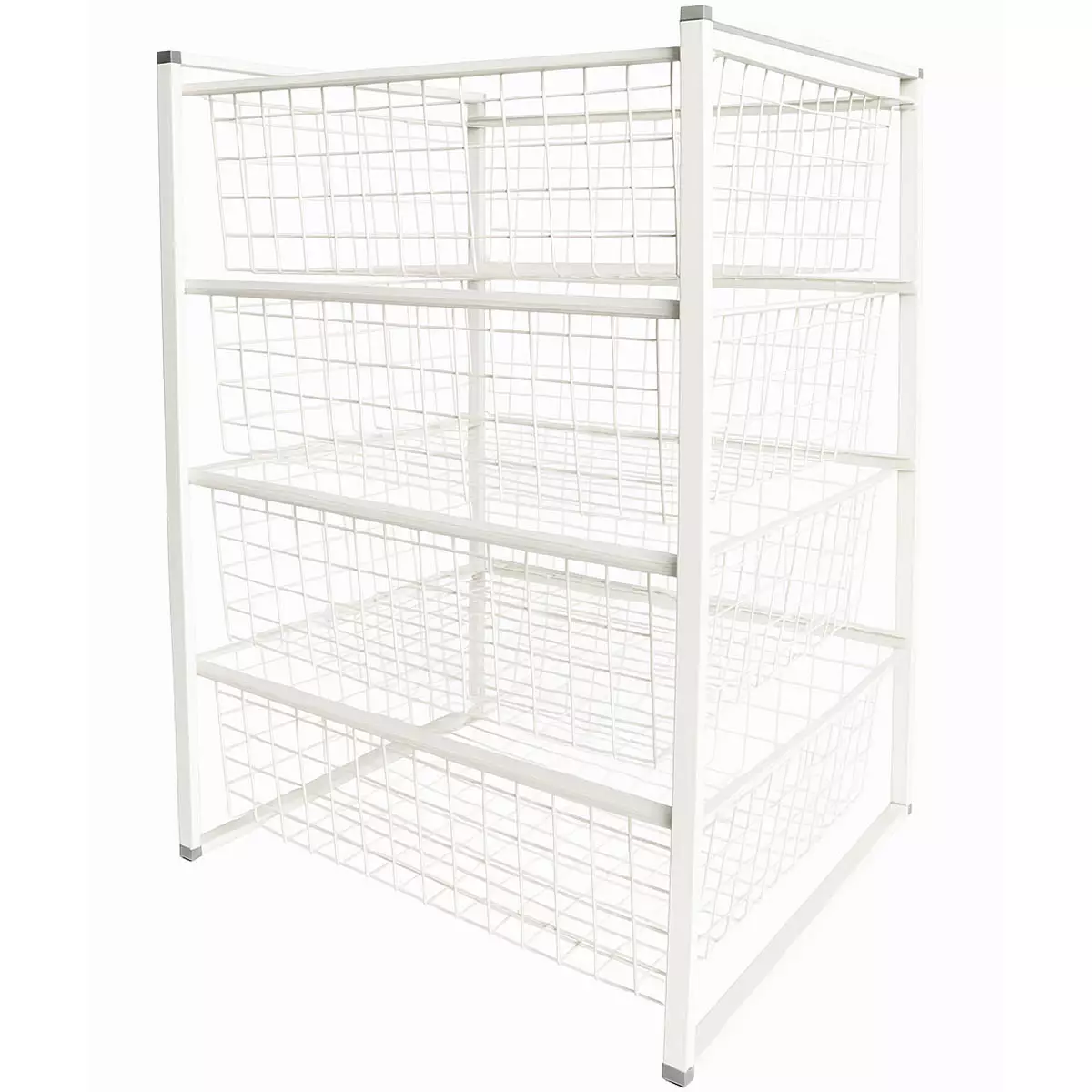 Tukeva metallirunko ja liukukiskot takaavat pitkän käyttöiän ja vaivattoman käytettävyyden. Jokainen kori liukuu helposti ulos, joten sisältö on aina käden ulottuvilla. Sopii loistavasti myös siivouskomeroon tai eteisen säilytykseen.